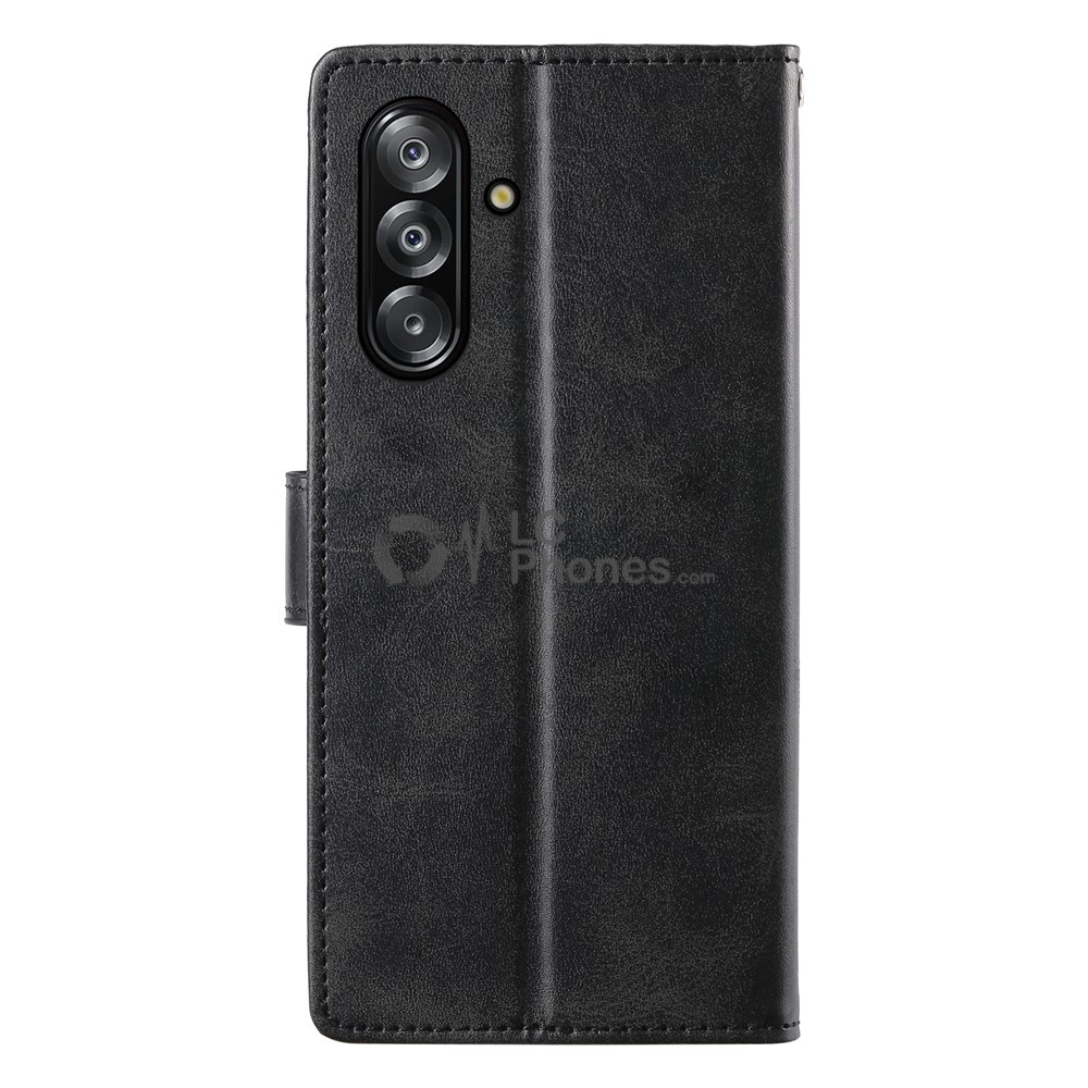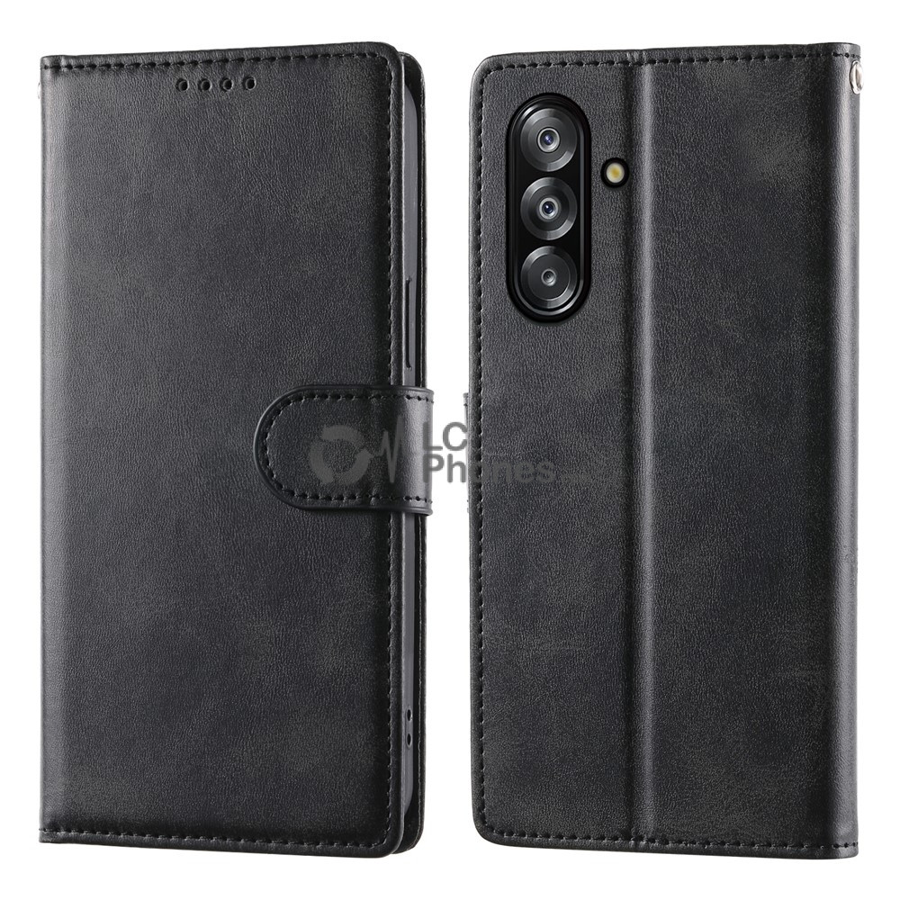 Samsung Galaxy A16 A165 - Calf Textured Leather Stand Wallet Case Black
