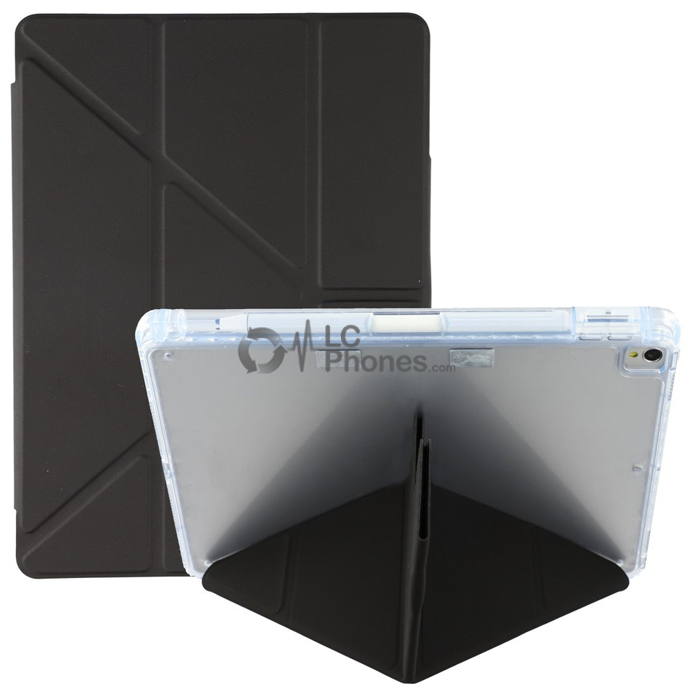 iPad 10.2 7th Gen (2019) A2197 A2198 A2200 - Y-Fold Stand Acrylic Back PU Leather Flip with Pencil Holder Black